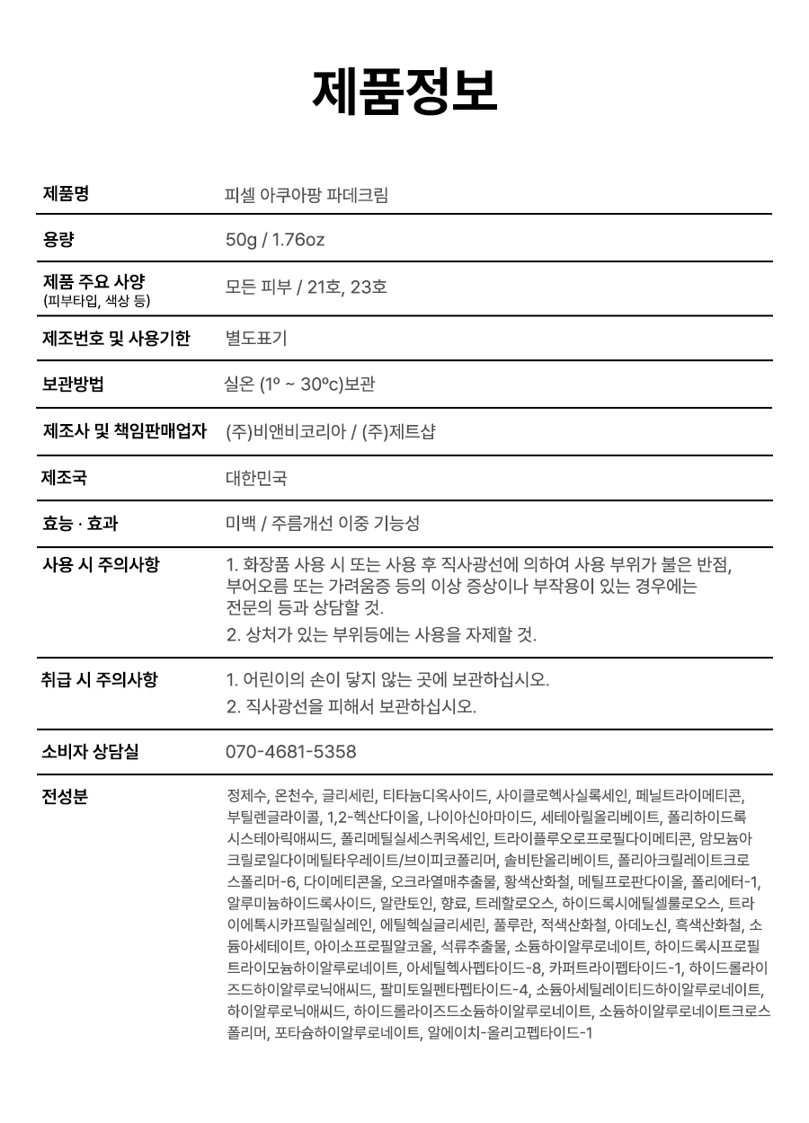 > ♥가을맞이 한정 파격 할인특가♥ 피셀 아쿠아팡 파운데이션 크림